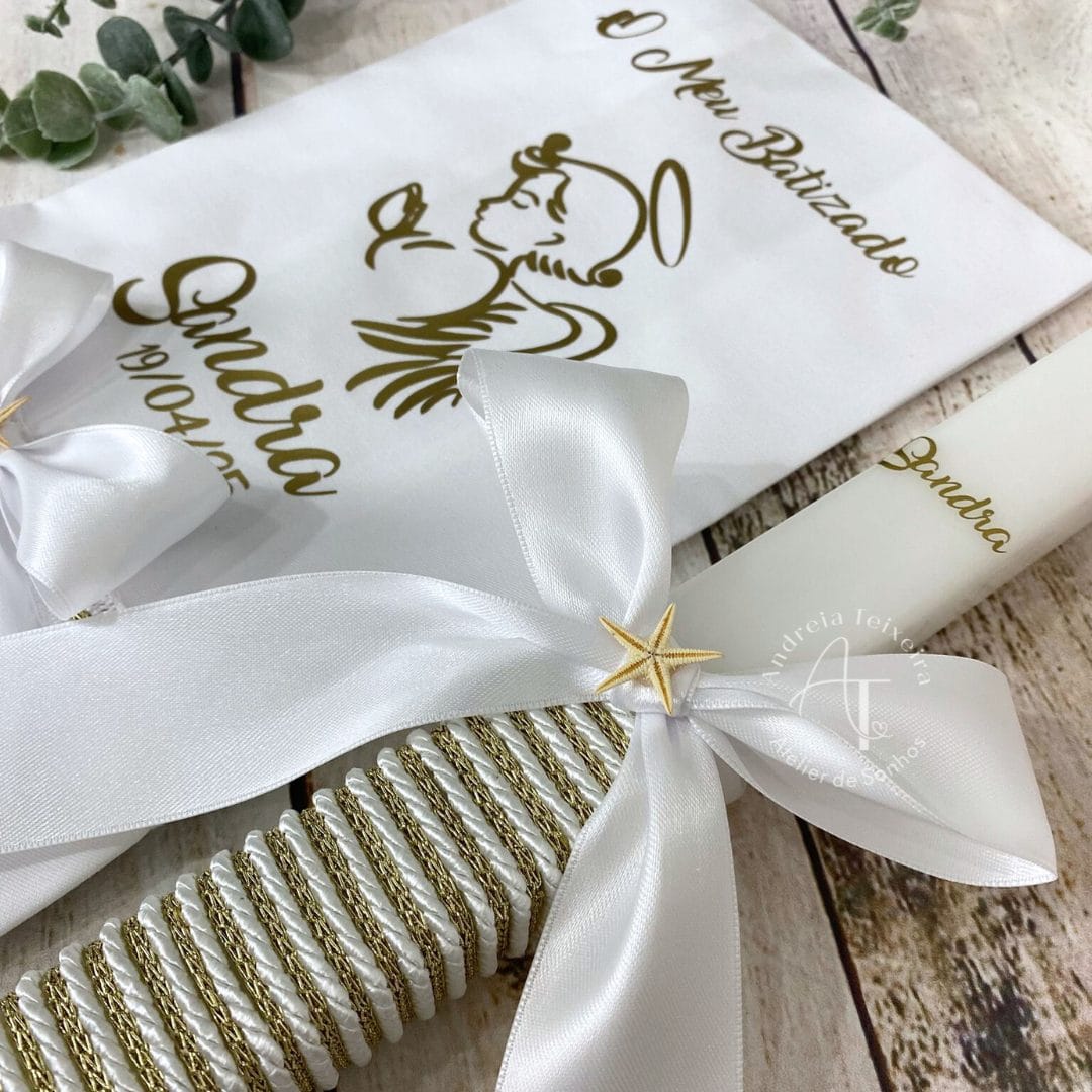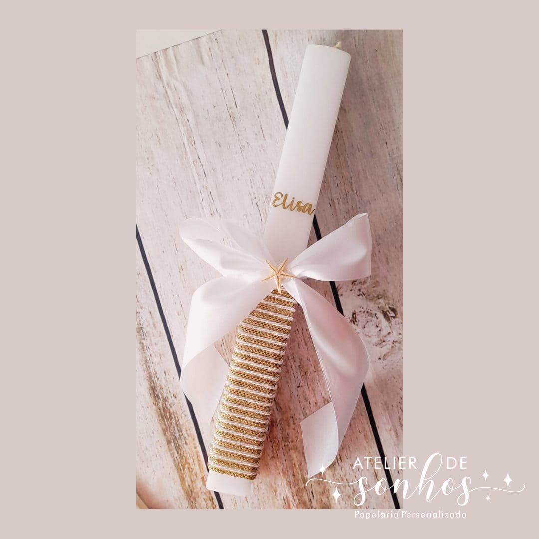 Vela de batismo em formato quadrado, com acabamento delicado e detalhes personalizados para um dia verdadeiramente especial.